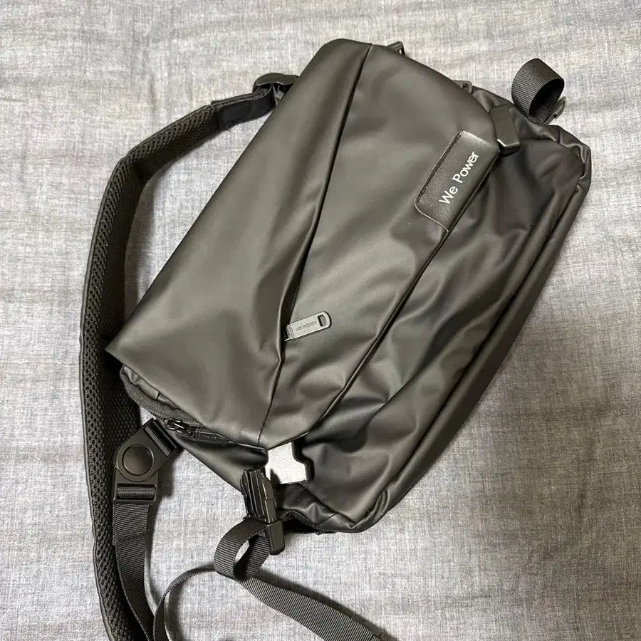 다크 그레이 색상의 나일론 소재 숄더백입니다. 안쪽 스트라이프 패턴 디자인이 특징이며 기능적입니다. - 브랜드: We Present - 색상: 다크 그레이 - 안쪽 디자인: 스트라이프 패턴 - 포켓 수: 여러 개의 포켓 - 소재: 나일론 방문해 주셔서 감사합니다.
