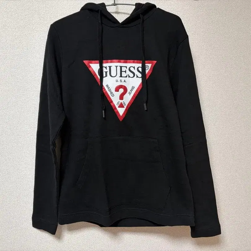 GUESS의 트라이앵글 로고가 특징인 블랙 후드티, 코튼 100%로 쾌적한 착용감. 미사용 새상품 남녀 공용 S 사이즈 - 브랜드: GUESS - 색상: 블랙 - 소재: 코튼 100% 방문해 주셔서 감사합니다.