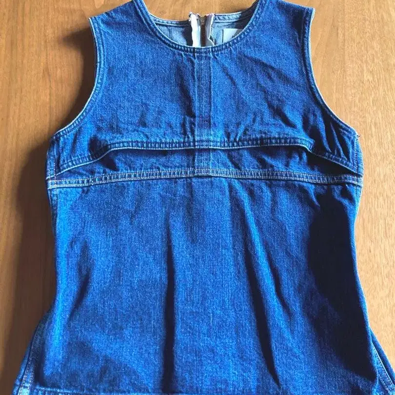 가슴 부분에 절개가 있고, 뒷면 허리 좌우 2곳에 밴딩 개더가 들어간 디자인입니다.