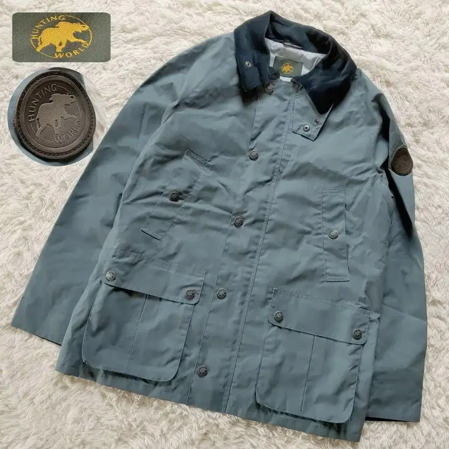A20241038 [ 상품 설명 ] * HUNTING WORLD x The British Millerain * 오일 자켓 * 색상: 스모키 블루 * 사이즈: S 기장(뒷면 옷깃 아래부터) 70cm 옷깃(리브) 6cm 가슴 너비 54cm 소매 길이 75cm 실측치수 참고 부탁드립니다. UK 제조 HUNTING WORLD x The British Millerain 헌팅월드 브리티시 밀러레인 가죽 와펜 각인 버튼 오일드 자켓 관리 NO.A20241038