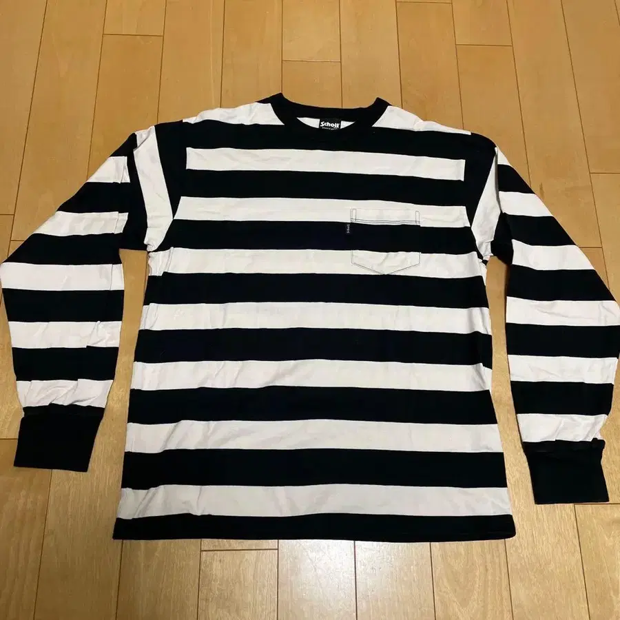 블랙과 화이트 스트라이프 디자인의 긴팔 티셔츠, M 사이즈, 포켓 부착. - 브랜드: Schott - 색상: 블랙/화이트 스트라이프 - 사이즈: M - 특징: 포켓 부착 포켓 아래에 점 정도의 얼룩이 있습니다. 방문해 주셔서 감사합니다. 어깨 너비/가슴 너비/소매 길이/기장 어깨 너비 - 48cm 가슴 너비 - 52cm 소매 길이 - 62cm 기장 - 65cm 패턴 디자인 - 보더