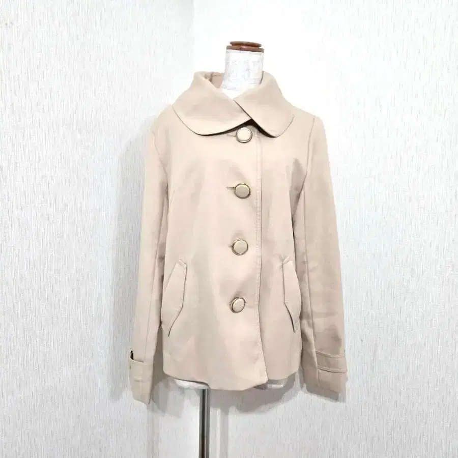 [ 특징 ] 약간의 광택감이 있는 고급스러운 베이지 컬러. 큰 버튼과 둥근 옷깃이 페미닌한 인상을 줍니다. 허리 기장으로 밸런스를 잡기 쉬우며, 팬츠나 스커트 모두에 잘 어울리는 디자인. 안감이 있어 가을부터 봄까지 길게 착용 가능.