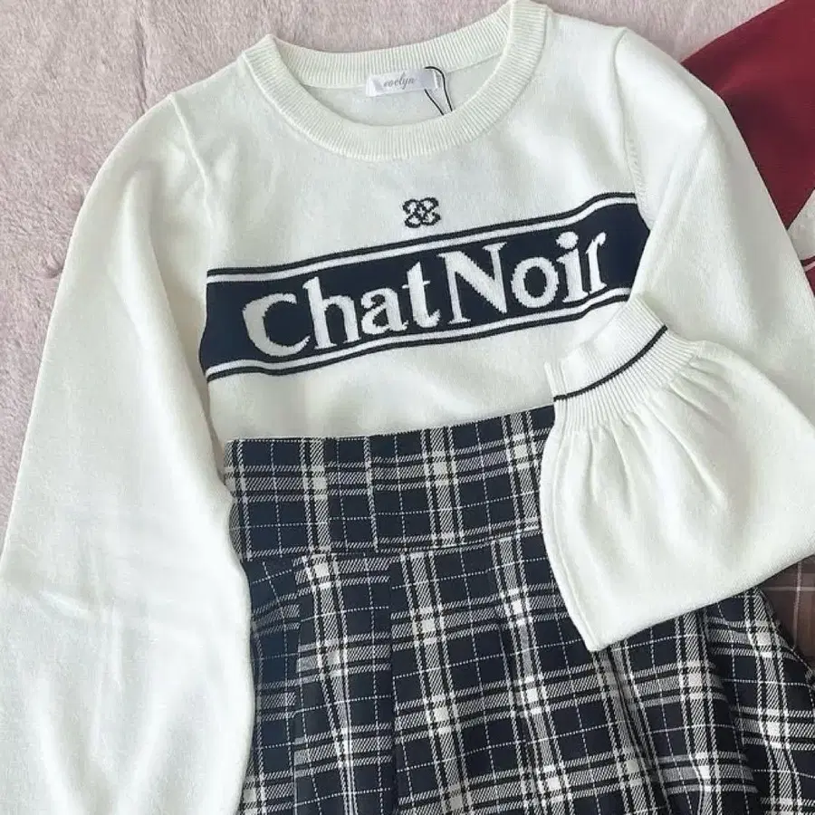 즉시 구매 가능 evelyn 에블린 니트 스웨터 화이트 로고 로고 라인 니트
