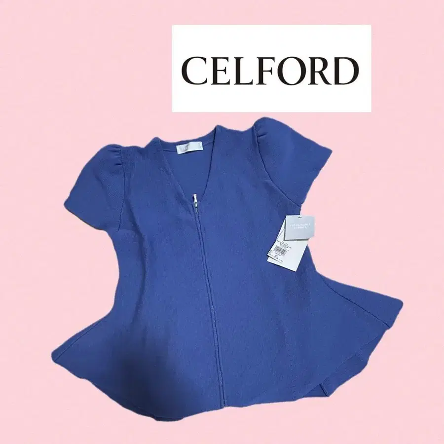 CELFORD 셀포드 상의 가디건 페플럼 변형 니트 반팔 블루 파랑
