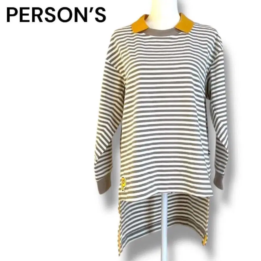 보더 디자인의 긴팔 피케 셔츠, 캐주얼한 스타일에 최적.