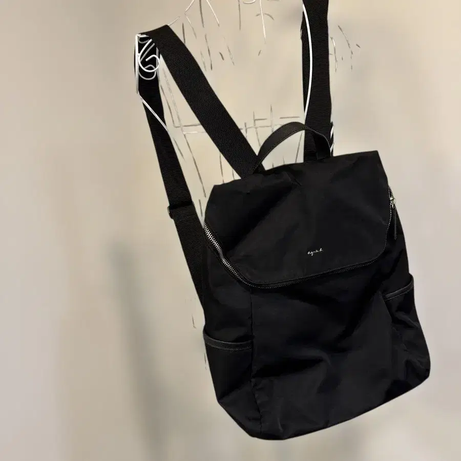 아그네스 베의 블랙 컬러 백팩입니다. 출퇴근, 외출, 마더백으로도 사용하실 수 있습니다. 한 곳의 지퍼 스트랩이 떨어졌지만 사용에는 지장이 없을 것으로 생각됩니다. 컬러 - 블랙 계열. 얼룩, 찢김 등 - 지퍼 부분 사진 참조 부탁드립니다.