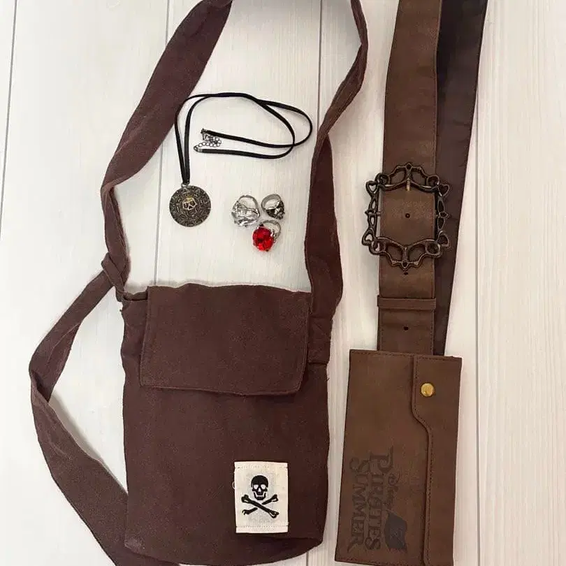 해적 테마의 브라운 숄더백, 금속제 버클 포함. 파이리츠 썸머의 사코슈?는 iPhone 14가 겨우 들어갈 정도이며 다른 것은 아무것도 들어가지 않습니다. 해적 코디 시 사용했습니다! 디즈니에서 구매했습니다. 반지도 디즈니랜드에서 구매했습니다. 사이즈를 알 수 없으므로, 덤 정도로 생각해 주시면 감사하겠습니다. - 색상: 브라운 - 디자인: 해적 테마 - 로고: Pirates Summer - 장식: 금속제 버클 방문해 주셔서 감사합니다.
