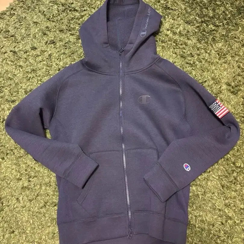다크 그레이 풀 집업 후드티, 미국 국기 자수 포함. - 브랜드: Champion - 사이즈: S - 색상: 다크 그레이 - 디자인: 풀 집업 - 특징: 미국 국기 자수 - 소재: 폴리에스테르 혼방 방문해 주셔서 감사합니다. 사이즈 - S