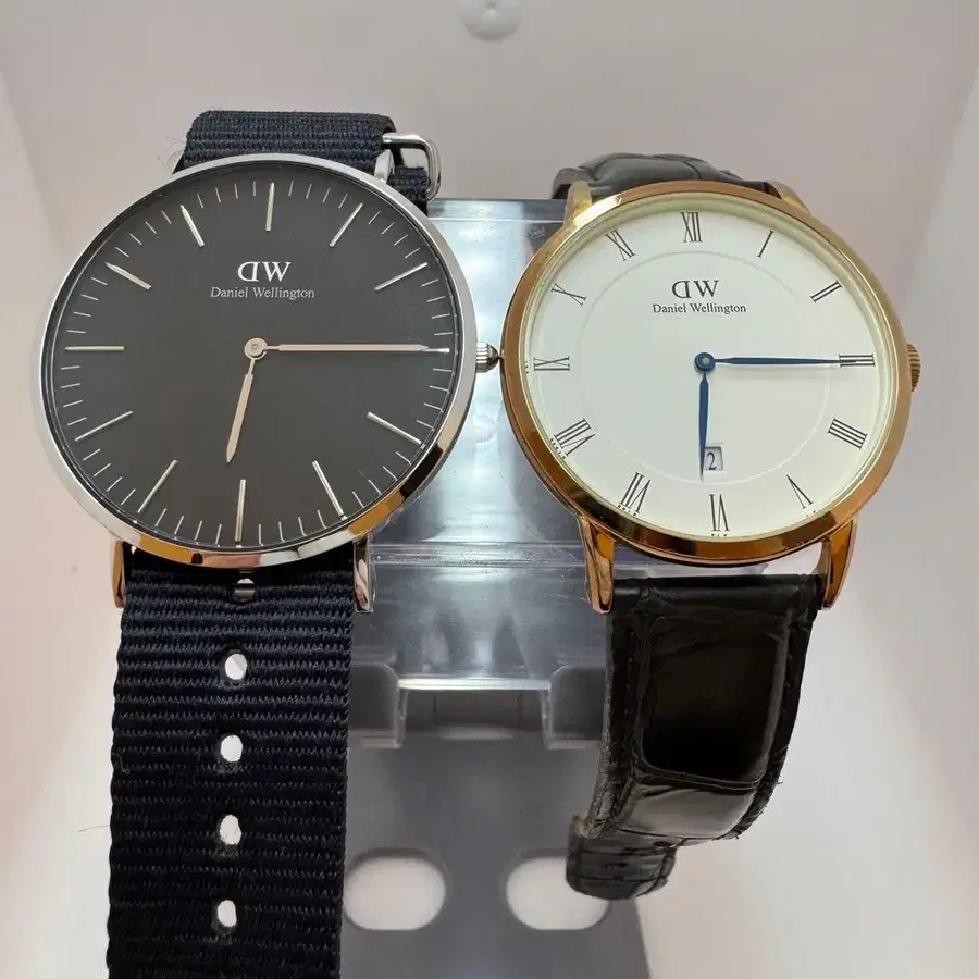 [ 상품 설명 ] [ 작동품 ] 다니엘 손목시계 2개 세트입니다. 두 개 모두 며칠 전에 배터리 교체 완료했습니다. 일상 사용 정도의 약간의 흠집 등은 있지만 전반적으로 깨끗하다고 생각합니다. 이미지로 확인해 주세요. 불명확한 점은 댓글 또는 자기소개에서 확인 부탁드립니다 ⭐︎ - 브랜드: Daniel Wellington - 색상: 블랙 - 스트랩 소재: 나일론, 가죽 - 다이얼 색상: 블랙, 화이트 - 스타일: 아날로그 - 케이스 소재: 스테인리스 스틸 다이얼 컬러 - 블랙, 화이트 벨트 컬러 - 블랙 부속품 - 부속물 없음 작동 - 양호 흠집, 깨짐 등 - 없음