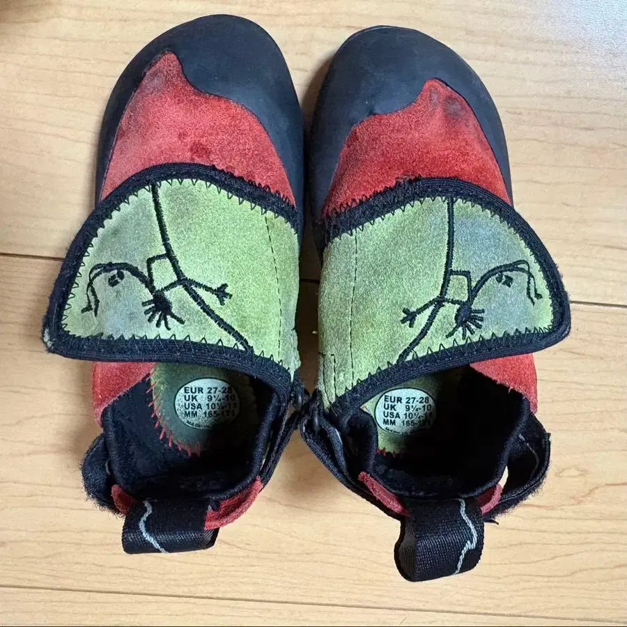 BOREAL 클라이밍 신발입니다. 아이가 사용했지만 많이 사용하지 못하고 사이즈가 맞지 않게 되었습니다. - 브랜드: BOREAL - 사이즈: EUR 27-28, UK 9-10, USA 10-11, MM 16-17 - 밑창 소재: 러버 - 색상: 레드/그린/블랙 - 디자인 특징: 벨크로 스트랩 방문해 주셔서 감사합니다.