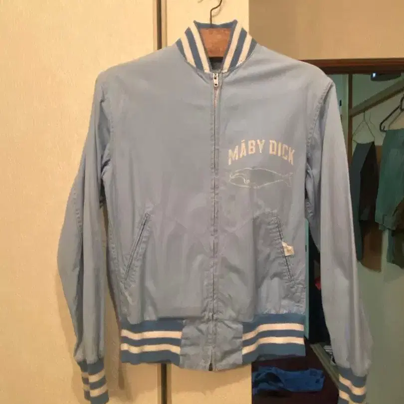 50년대~60년대 스윙탑입니다. 브랜드는 empire입니다. 포켓과 안쪽에 택이 2개 있습니다. 컬러는 희귀한 스카이블루입니다. 가슴 부분에는 흰고래 프린트가 있어 귀엽고 멋있습니다. 또 궁금한 점이 있으시면 댓글 부탁드립니다.