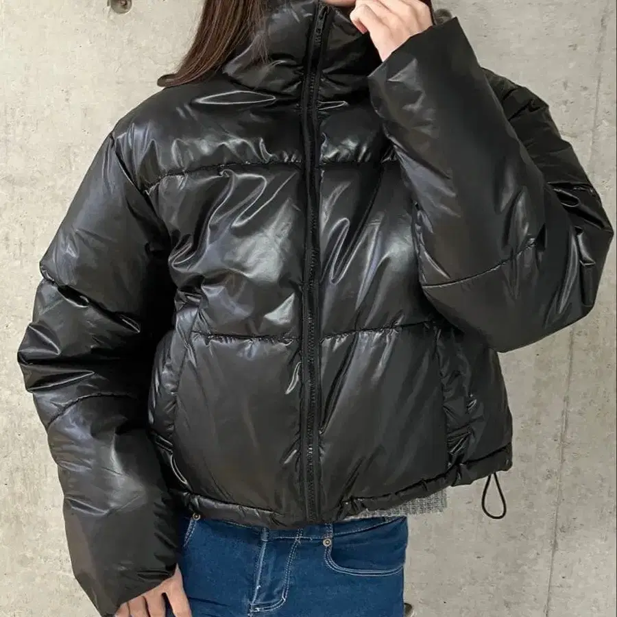 - 색상: 블랙 - 디자인: 광택 있는 마감 - 스타일: 숏 기장 - 특징: 후드 부착, 지퍼 개폐 - 소재: 다운 소재 사이즈 - FREE SIZE