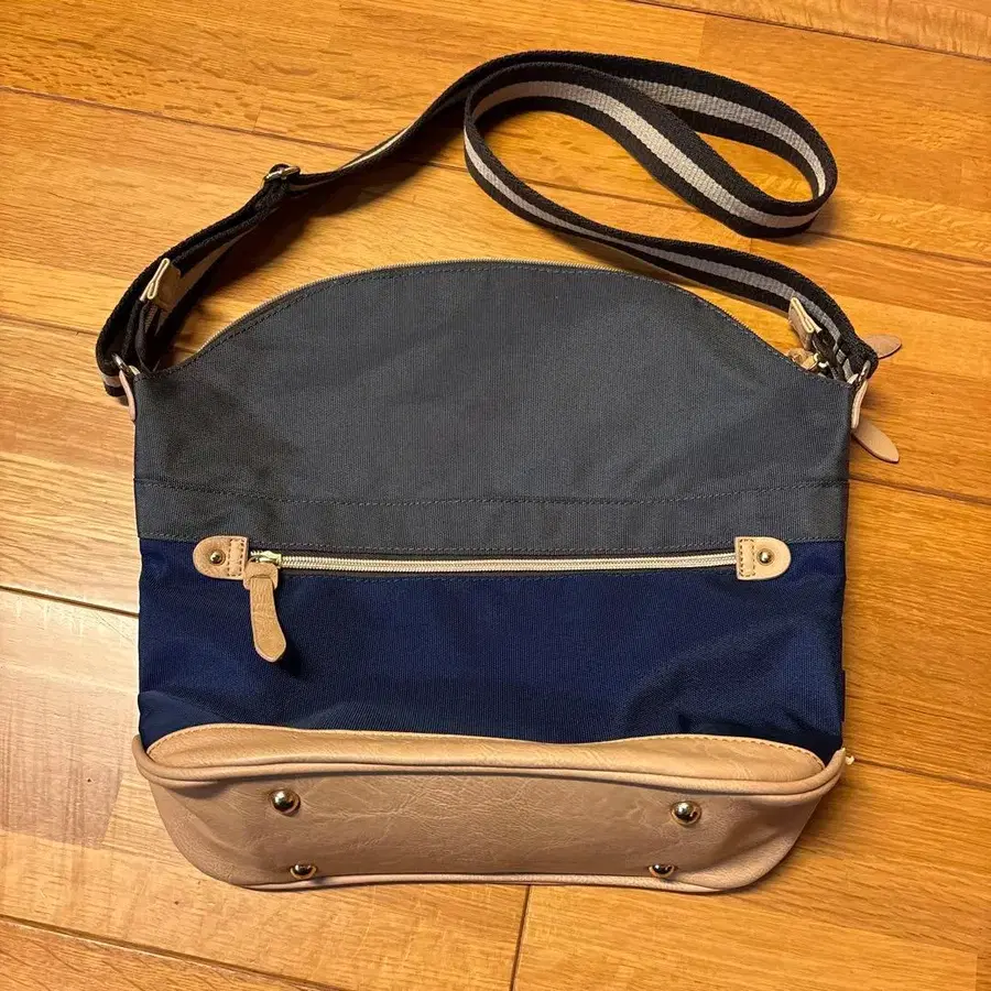 네이비와 그레이 캔버스 숄더백, 스트라이프 안감 부착. - 색상: 네이비와 그레이 콤비네이션 - 소재: 캔버스와 합성 피혁 - 내부 디자인: 스트라이프 패턴 안감 - 포켓: 외부에 지퍼 포켓 1개 - 스트랩: 조절 가능한 숄더 스트랩 방문해 주셔서 감사합니다.