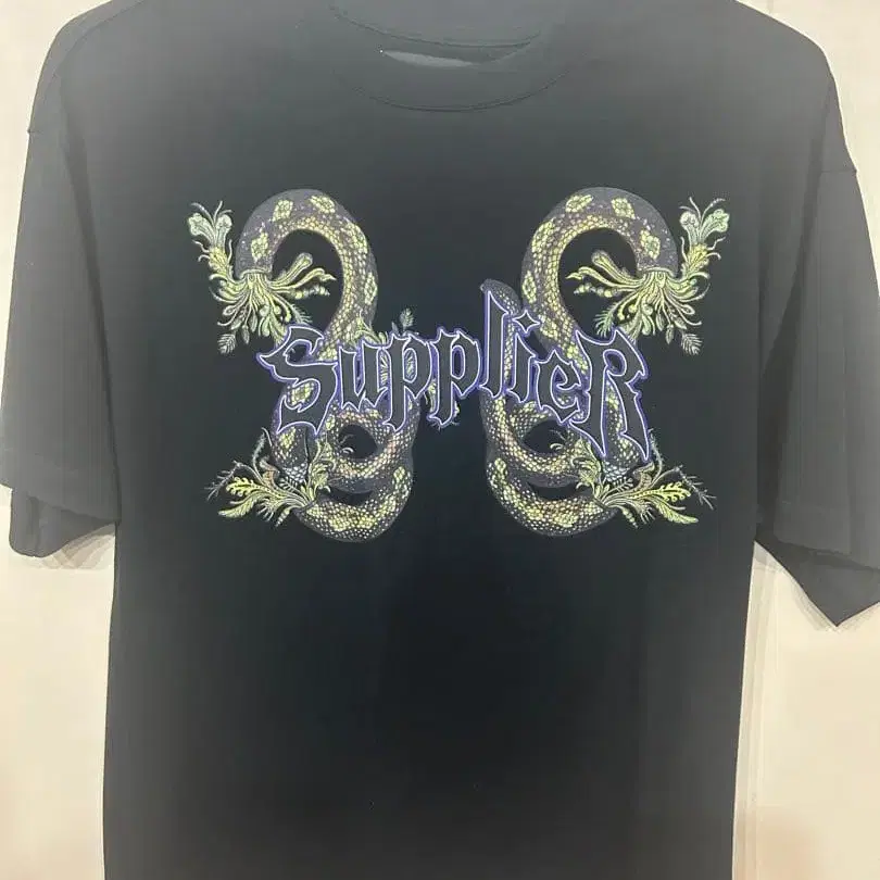 공급업체 그래픽이 특징인 블랙 T셔츠, 오버사이즈 디자인. - 색상: 블랙 - 디자인: 공급업체 그래픽 프린트 - 스타일: 오버사이즈 - 백 디자인: 무지 - 소재: 코튼 또는 폴리에스테르 혼합 (추측) 방문해 주셔서 감사합니다.