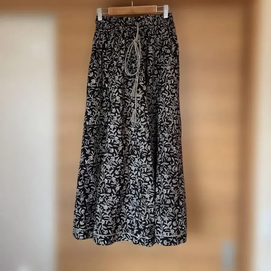 꽃무늬 플레어 스커트, 허리밴딩으로 쾌적한 착용감. - 스타일: 플레어 스커트 - 허리: 밴딩과 끈 포함 - 소재: 인도 블록 프린트 코튼 (추정) 방문해 주셔서 감사합니다. 사이즈 - FREE SIZE 정가 9500엔