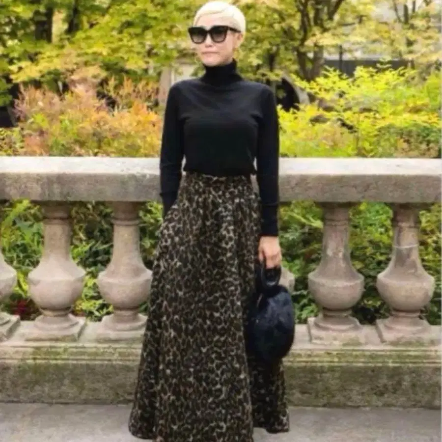 레오파드 무늬 플레어 롱 스커트, S 사이즈, 폴리에스테르 100%.
