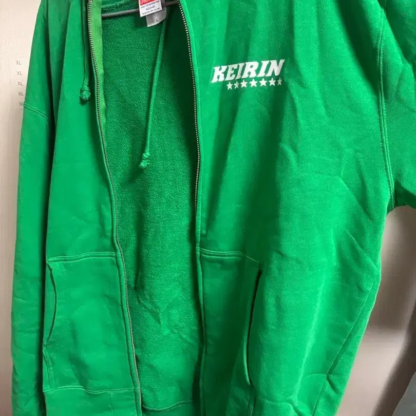 KEIRIN 로고가 들어간 풀 지퍼 후디, 선명한 그린 컬러.