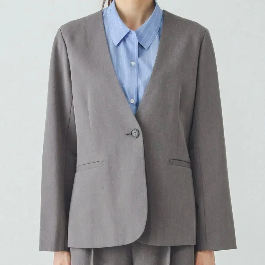 그레이 노카라 자켓과 팬츠 세트