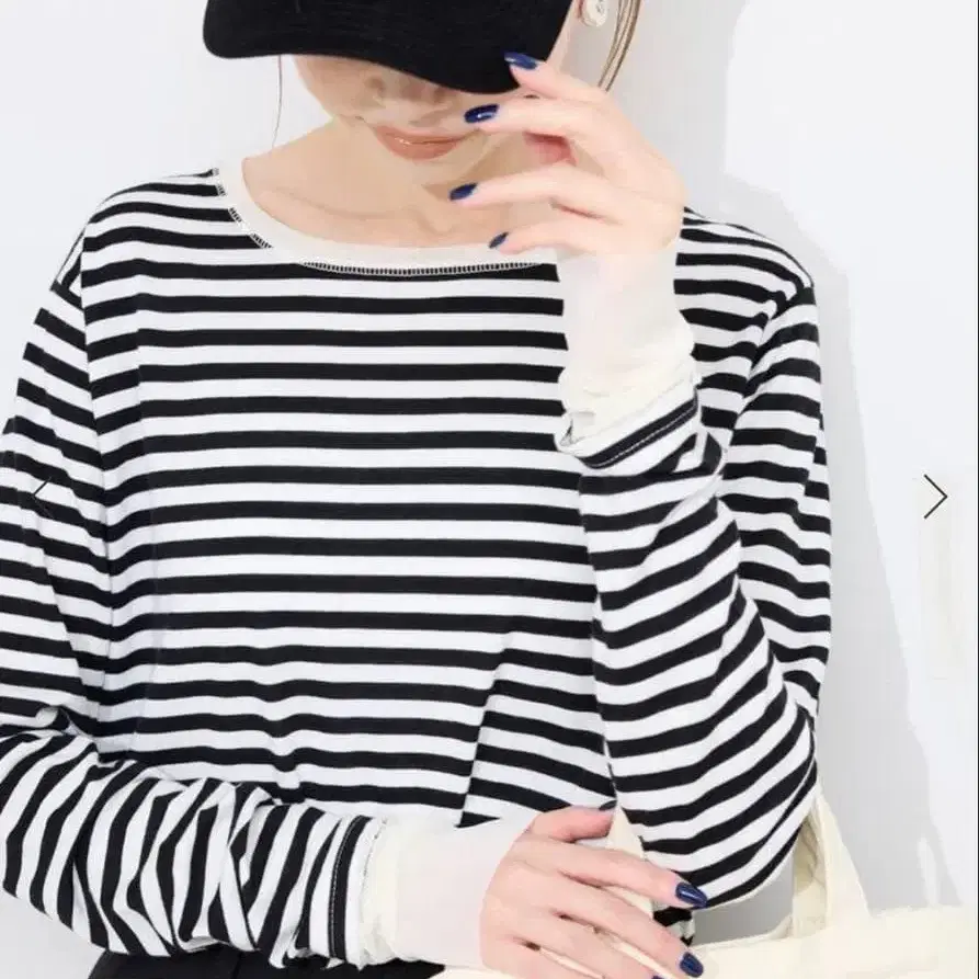 미사용 새상품 안피로 긴팔 티셔츠 화이트 블랙 보더