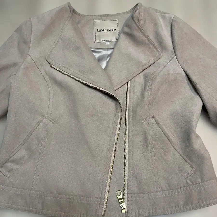 스웨이드풍의 라이트 그레이 색상으로, 더블 라이더스 디자인의 자켓입니다. - 브랜드: Appuerisen-rich - 색상: 라이트 그레이 - 디자인: 더블 라이더스 - 소재: 스웨이드풍 - 지퍼: 더블 지퍼 방문해 주셔서 감사합니다.