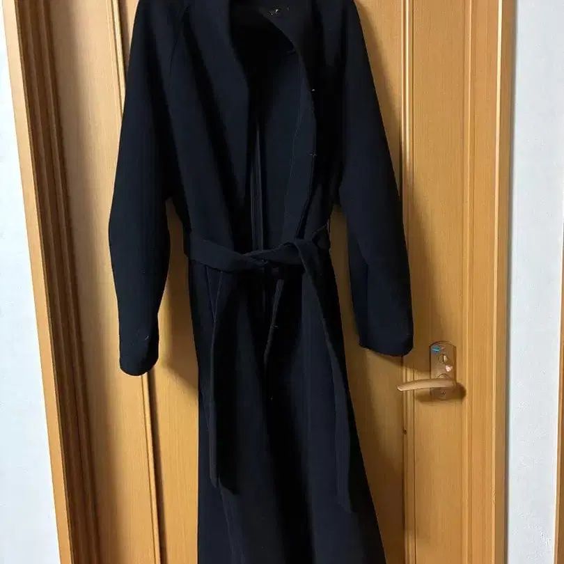 테라스 롱 코트 더블 브레스트 허리 벨트 포함