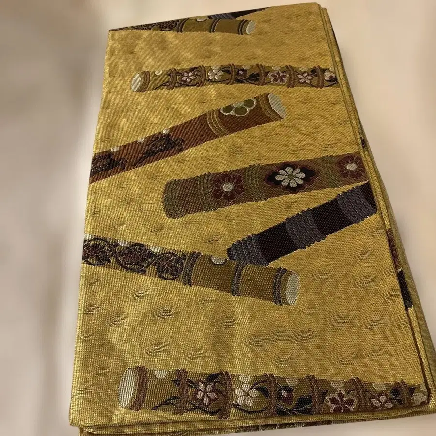 골드 컬러의 대나무 무늬와 꽃무늬가 아름다운 후쿠로 오비. - 색상: 골드 컬러 - 디자인: 대나무 무늬와 꽃무늬 - 소재: 직물 - 스타일: 후쿠로 오비 작게 접어서 발송합니다. 방문해 주셔서 감사합니다.