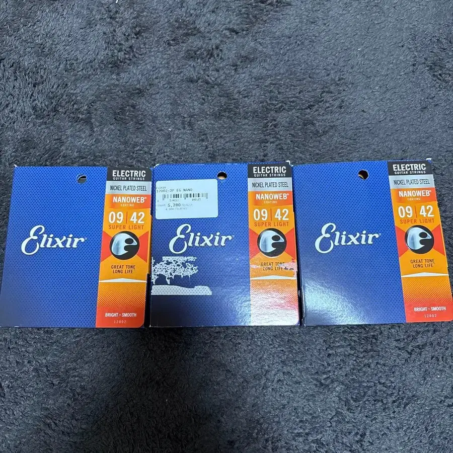 [ 미사용 새상품 ] Elixir 일렉 기타 줄 9-42 3팩 3상자