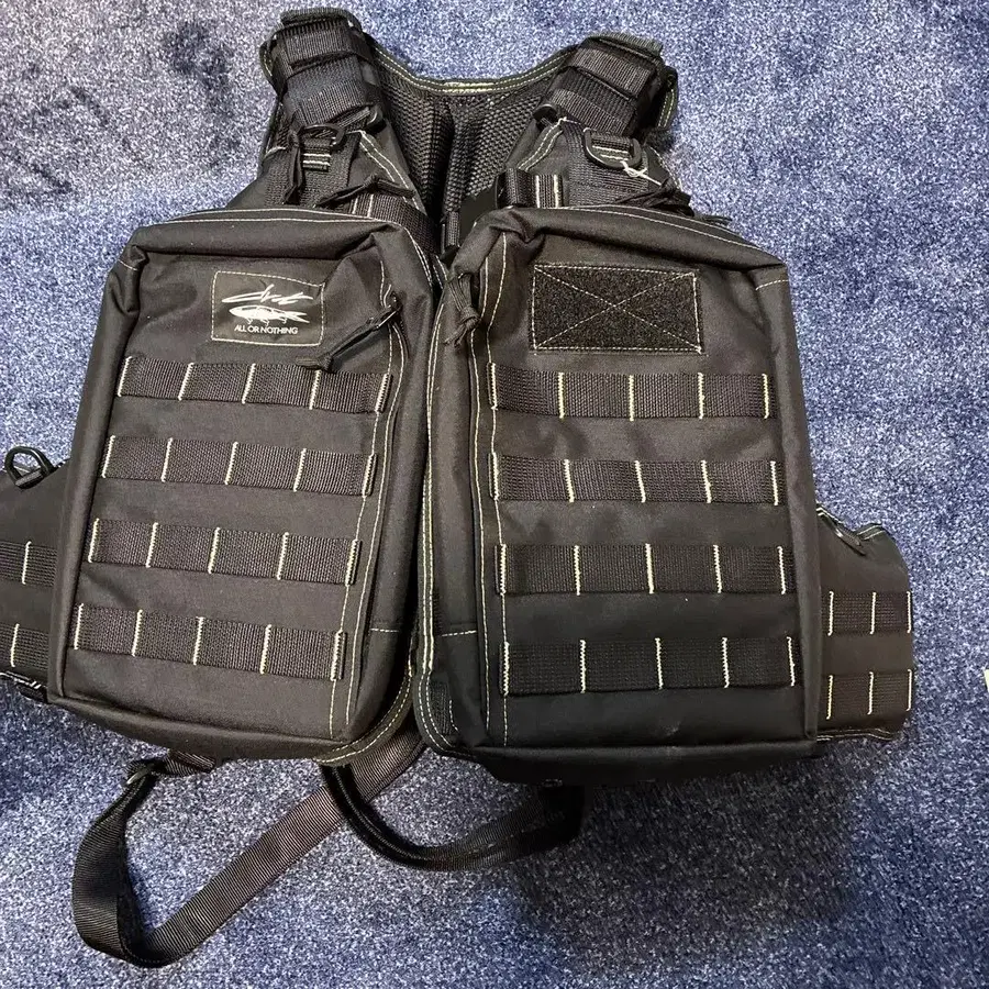 몰 시스템이 탑재된 블랙 낚시용 조끼, 여러 개의 포켓으로 수납력 발군. - 브랜드: ALONG NOTHING - 색상: 블랙 - 디자인 특징: 몰 시스템 부착 - 포켓 수: 여러 개의 포켓 - 사이즈 조절: 허리 벨트 부착
