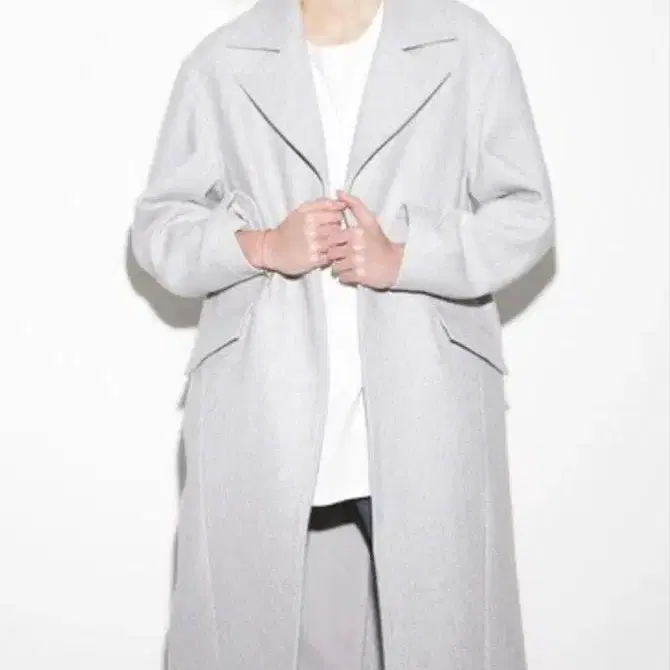 울 혼방 그레이 롱 코트, 백 프린트 포함하여 스타일리시함.