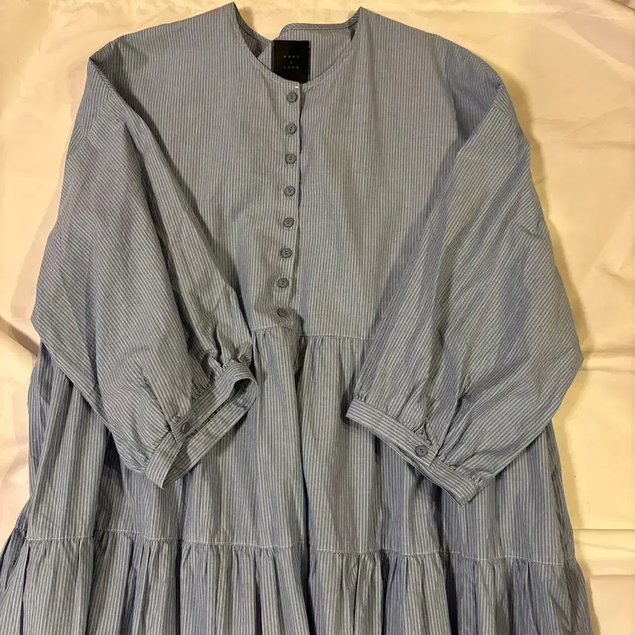 사이즈 - FREE SIZE 컬러 - 블루 계열 패턴 - 스트라이프 계절 - 봄/여름 가슴 너비 약 55cm 기장 약 121cm 뒷면 밑단 쪽에 얼룩이 있습니다. 4번째 사진 참고