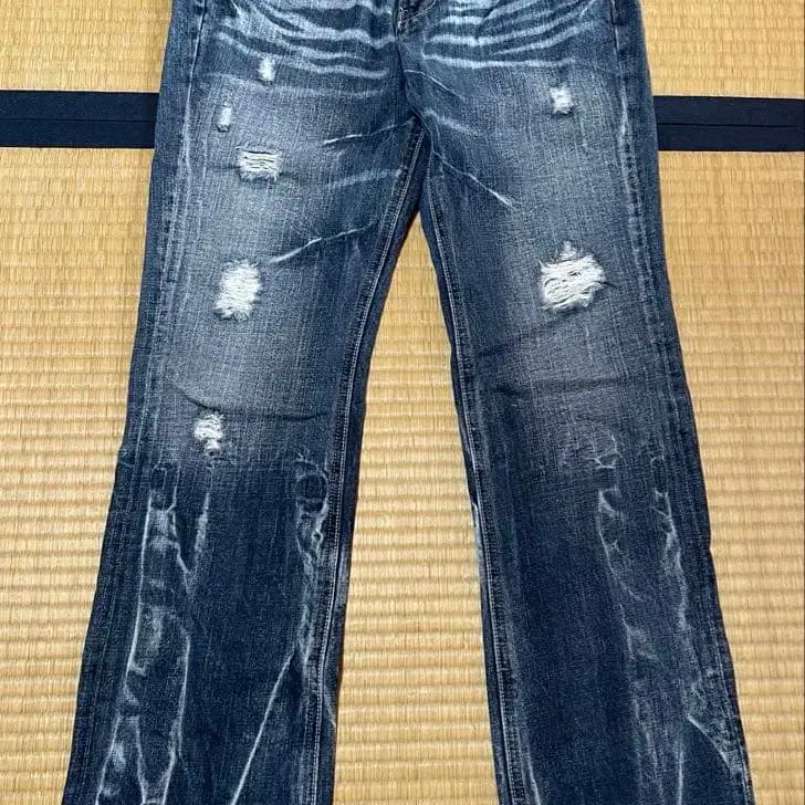• 새상품 데미지 가공 다크 블루 데님 팬츠 남성용 폴더블 오샤레