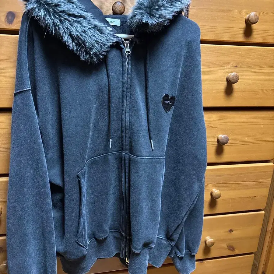 ONCILY HEART PATCH FAUX-FUR ZIP HOODIE / 하트 패치 인조 모피 지퍼 후디 사이즈 - M 컬러 - 블랙 계열 후드 부분의 퍼 탈부착 가능 몇 번 사용했습니다.