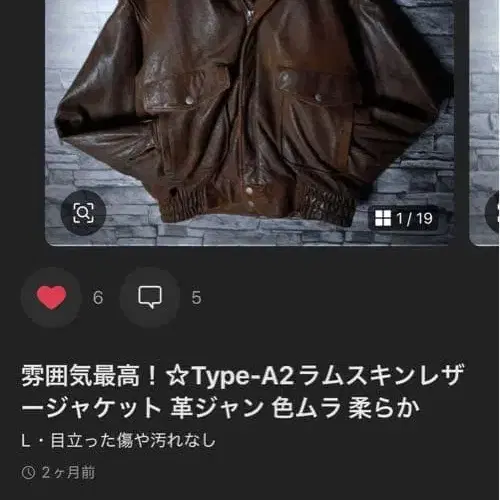 이 상품은 메루카리에서 구매했지만 제가 너무 말라서 사이즈가 맞지 않아 판매합니다. 〇택 표시 사이즈 ⇒ L 어깨 너비 ⇒ 약 54cm 가슴 너비 ⇒ 약 60cm 기장 ⇒ 약 66cm 소매 길이 ⇒ 약 58cm 꽤 큽니다. 가슴 너비가 넓은 빅 실루엣입니다. ㊟평평하게 놓았을 때 치수 측정입니다. 가지고 계신 의류의 실측치수와 비교하여 맞는지 확인해 주세요. 〇상태 전체적으로 스크래치가 있는 가죽 자켓입니다. 눈에 띄는 얼룩이나 데미지는 보이지 않으므로 앞으로도 계속 착용하실 수 있습니다. 〇색상 갈색 브라운 〇설명 깊은 맛이 나는 리얼 가죽 자켓입니다(^^ ♪ 색상은 차분한 브라운. 소재는 촉촉하고 부드러운 램스킨입니다. 무엇보다 가죽의 질감이 최고! 사용되어 스크래치로 인해 거칠어진 주름 가죽은 가죽 애호가라면 놓칠 수 없죠! 올드 가죽 페티시라면 아실 거예요! (^^ ♪ 스타일은 스테디셀러인 A2, 유행에 관계없이 오랫동안 함께할 수 있습니다. 마실용 옷으로도 라이더 스타일로도 다양하게 입고 싶은 남성 빈티지 스타일에 꼭 추천합니다! (^^ ♪ 〇소재 램스킨