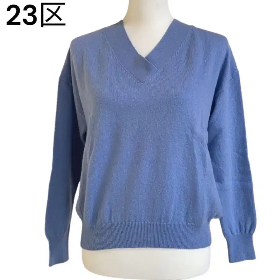 23구 라이트 블루 V넥 스웨터 긴팔 울 리브 깔끔한 비즈니스