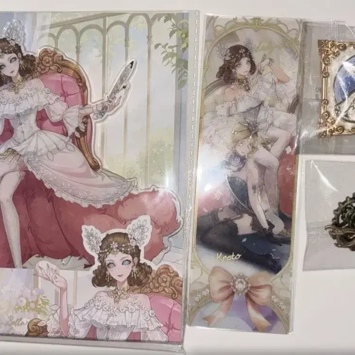 제5인격 오프라인 팩 한정판 굿즈 아크릴 스탠드, 핀 배지 2개, 클리어 책갈피 4개 세트입니다.