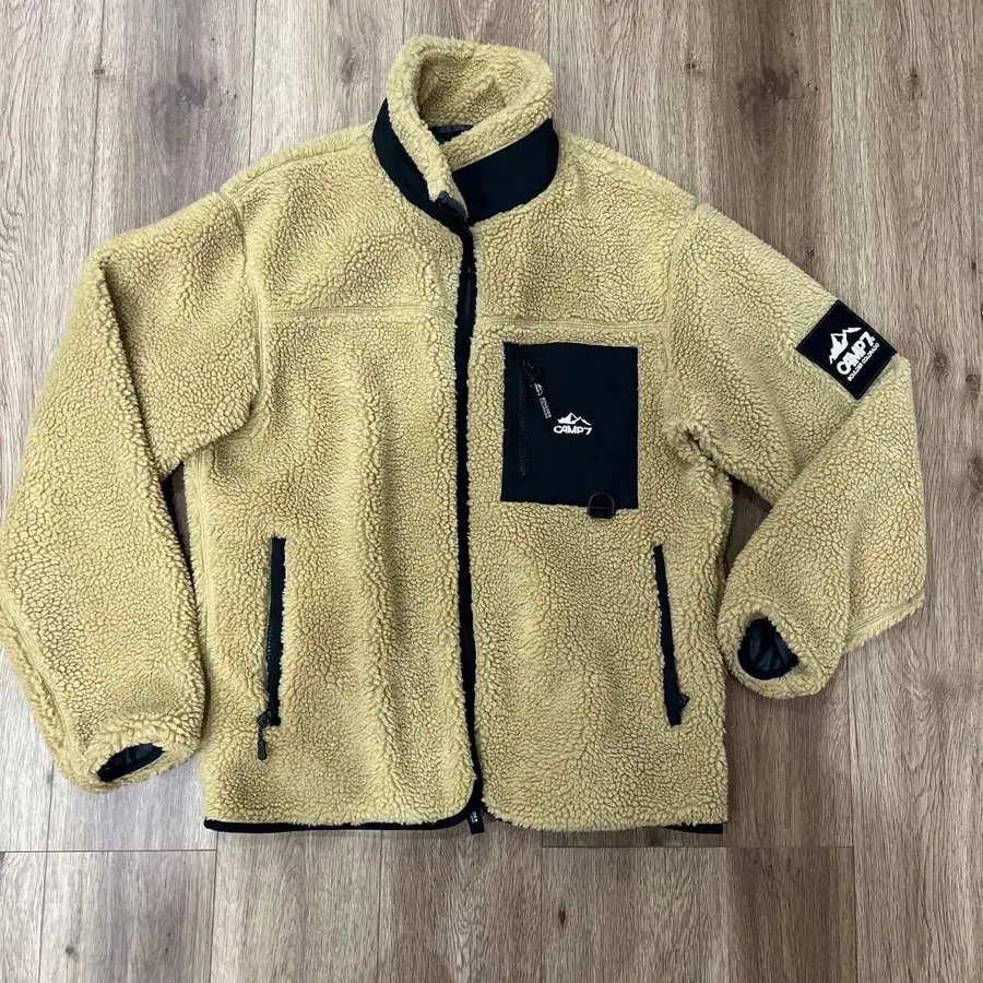 베이지 플리스 자켓, CAMP7 로고 포함, 지퍼 포켓 있음. - 브랜드: CAMP7 - 색상: 베이지 - 소재: 플리스 - 포켓: 프론트 포켓 (지퍼 포함) - 로고: CAMP7 로고 (자수) 방문해 주셔서 감사합니다. 사이즈 - M