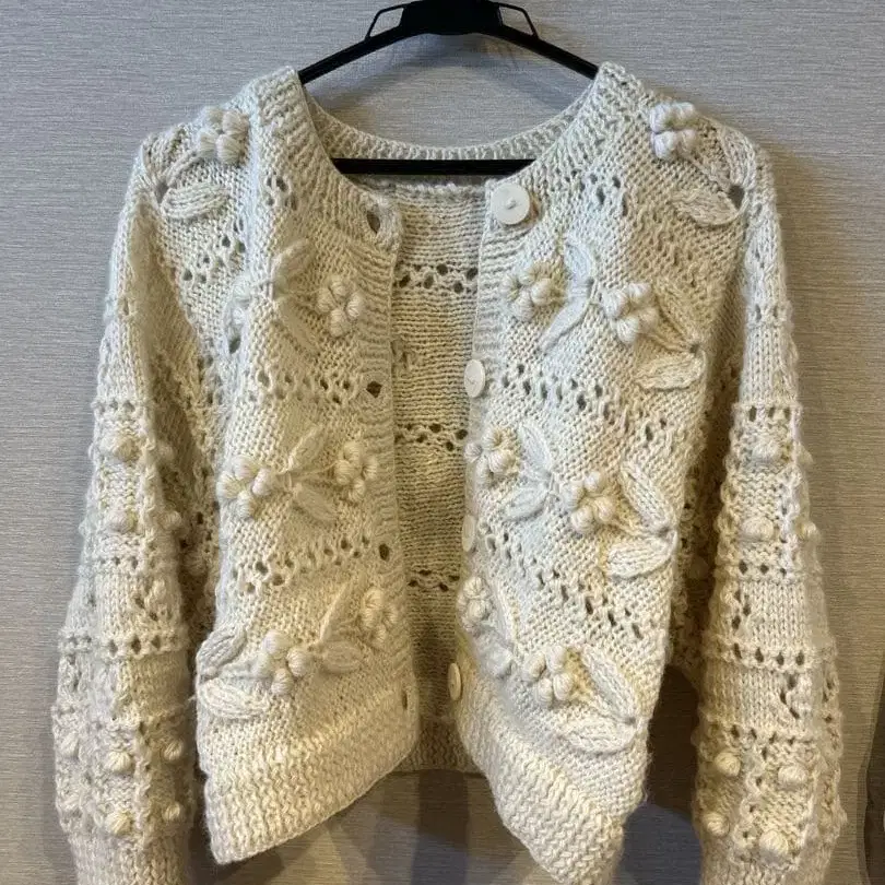 새상품급 LAURA ASHLEY 꽃무늬 자수 가디건 베이지 울