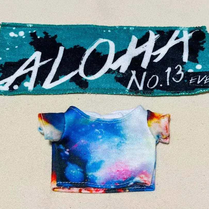 초특급 아로하 EVE 봉제 인형 의류 EVE Mascot T-shirt&towel(터콰이즈) 새상품 구매했으나 거의 사용하지 않아 판매합니다. 초특급 EVE 투어 카이 료가 타쿠야 유키 타카시 슈야 마사히로 아로하 하루