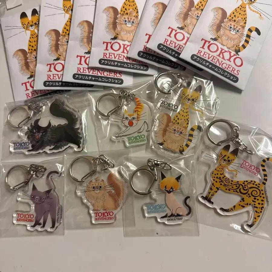 도쿄 리벤저스 x RE:SHAZAM 블랙 고양이 디자인 아크릴 참 컬렉션 7종 세트 타케미치 마이키 드라켄 미츠야 치후유 바지 시크릿 드라켄 & 마이키 낱개 판매 불가 미개봉 원래 봉투 포함
