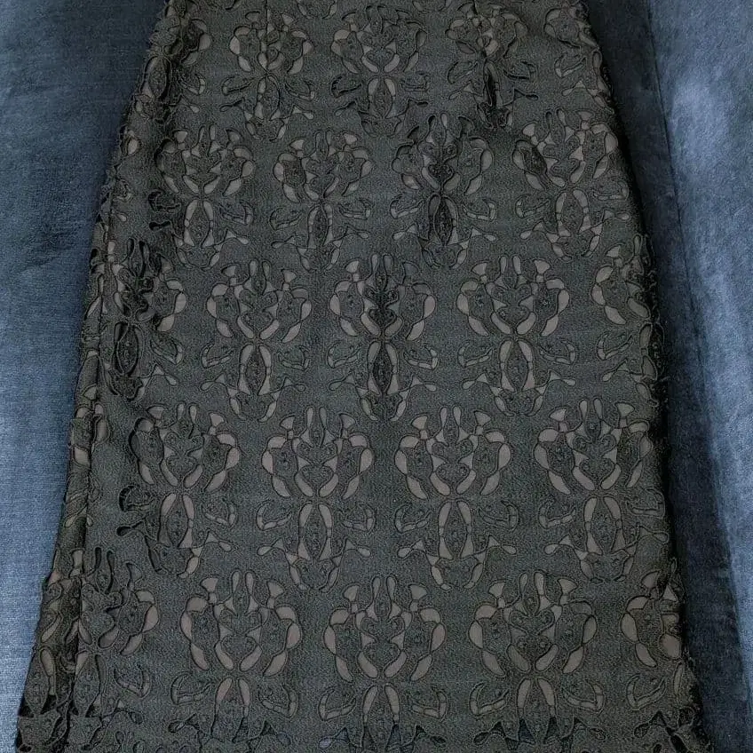 ANAYI 블랙 레이스 타이트 스커트 사이즈가 맞지 않아 판매합니다. 블랙 레이스 스커트, 새틴 안감 부착으로 엘레강트한 인상. - 색상: 블랙 - 사이즈: 38 - 디자인: 레이스 패턴 - 안감: 새틴 소재 - 밑단: 프릴 디자인