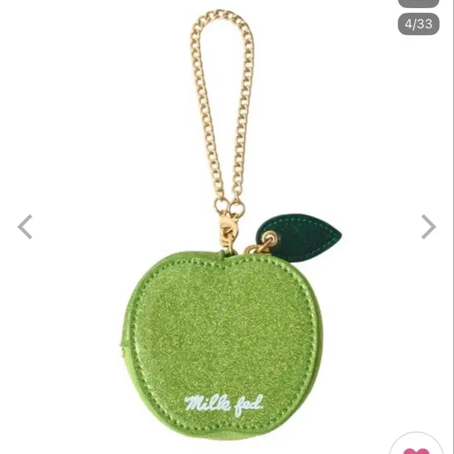 그린 색상의 사과 모양 파우치, 반짝이는 디자인이 특징. - 브랜드: MILKFED. - 모델명: APPLE POUCH - 사이즈: ONE SIZE - 색상: 그린 미사용 새상품 자택 보관에 이해하신 후 구매 부탁드립니다.