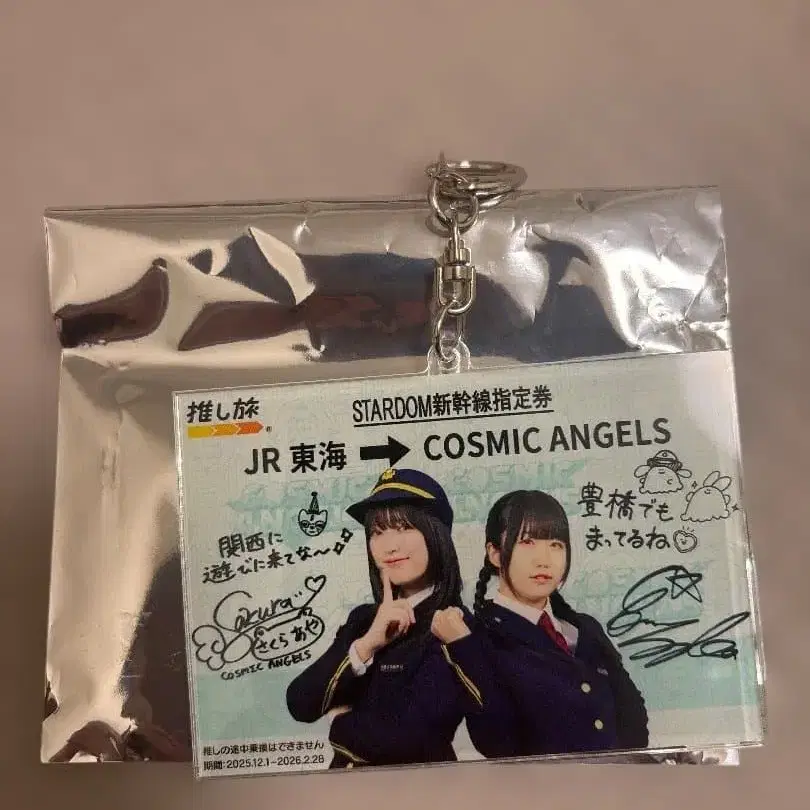 스타덤 최애 여행 사쿠라 아야 선수와 쿠레 사야카 선수의 아크릴 키링입니다. 내용물 확인을 위해 한 번 개봉했습니다.