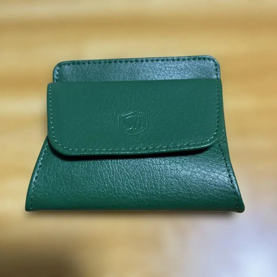 그린 가죽 코인 케이스 이단 접이