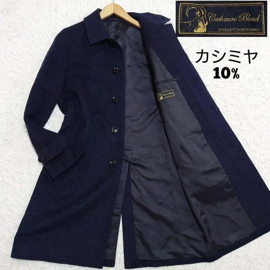 캐시미어 혼방 스텐카라 코트 발마칸 네이비 마이크로 체크 L