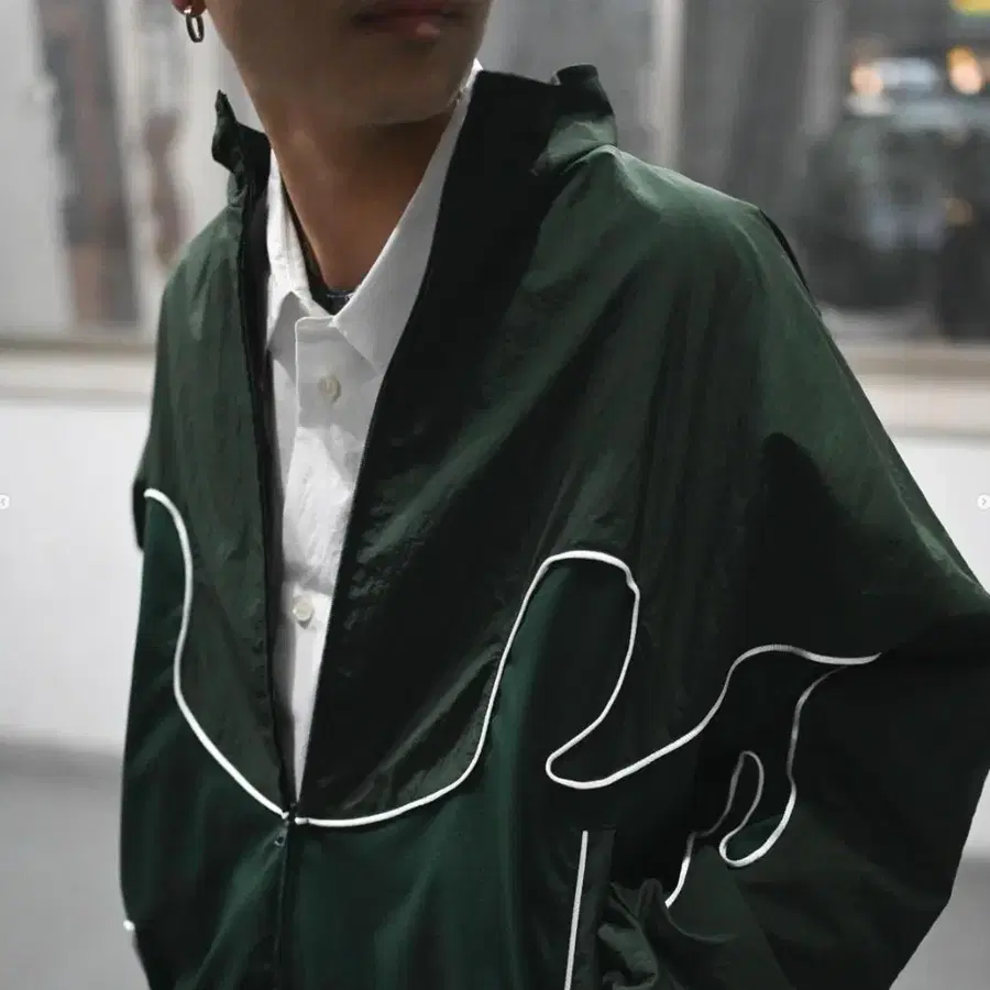 나일론 자켓 그린/화이트/블랙 윈드 브레이커 아우터