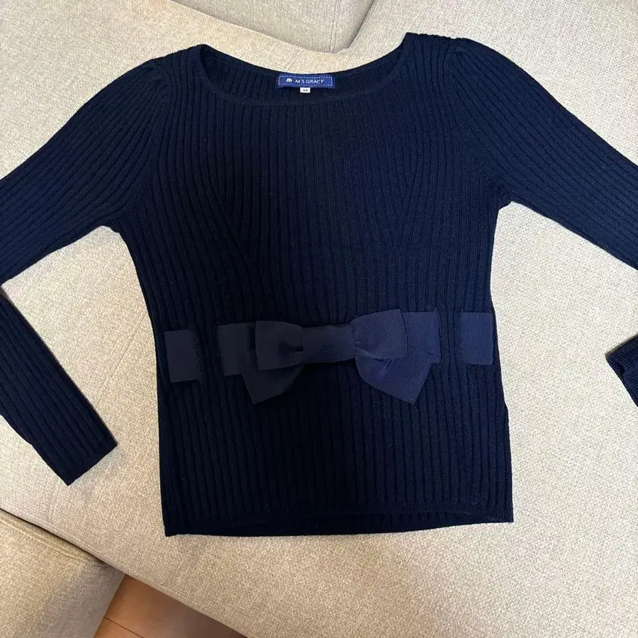 M'S GRACY 네이비 리본 포함 스웨터 38