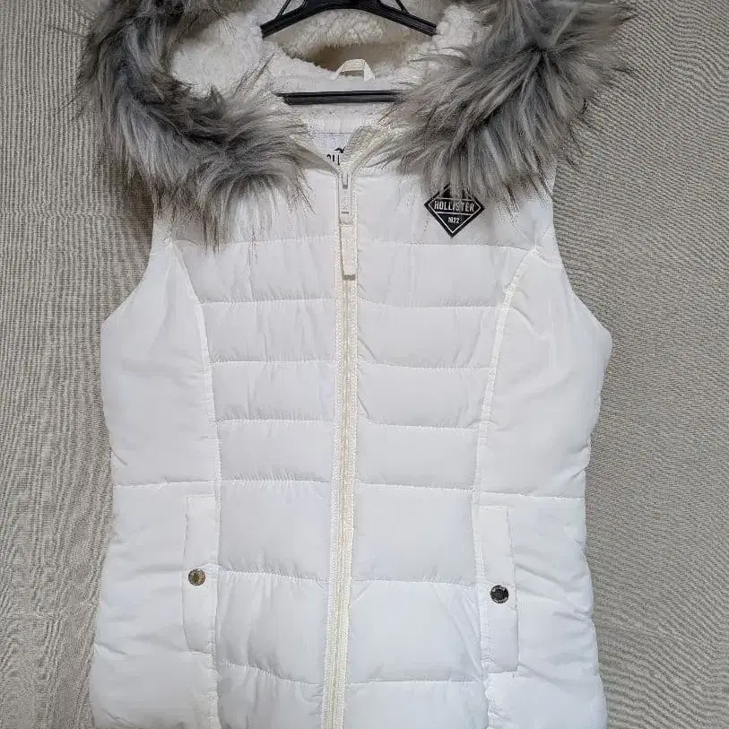 퀼팅 가공이 된 화이트 다운 베스트.