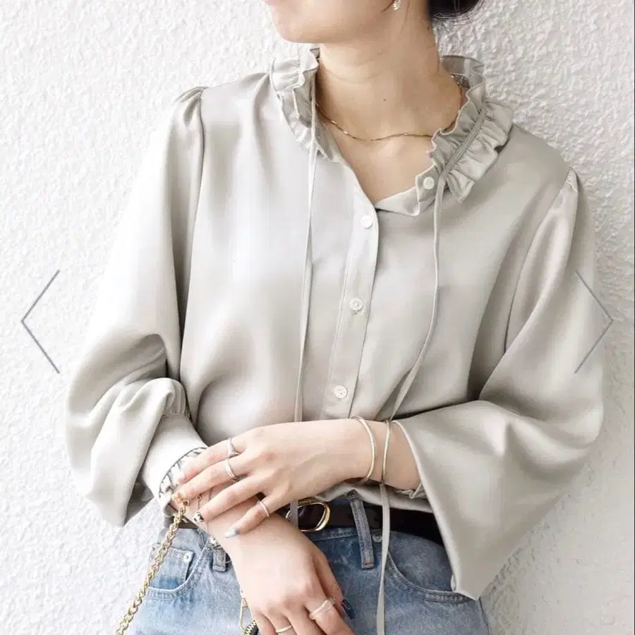 • IENA 이에나 새틴 긴팔 블라우스 히요쿠 버튼 크림 주름 가공 셔츠