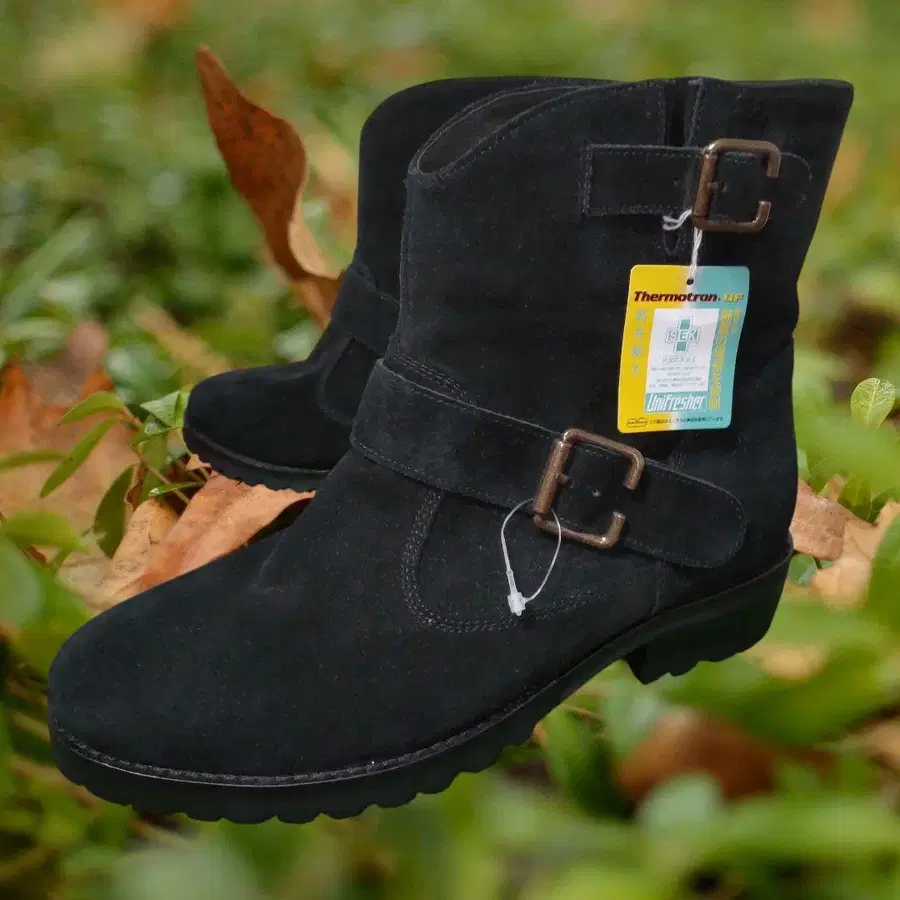 ♡ 항균 방취 가공이 된 스웨이드 ♡ 블랙 숏부츠 ♡ 버클 디자인이 특징 ★ 이 제품은 유니크한 소재 사용입니다! ● 색상: 블랙 ● 소재: 스웨이드 ● 기능: 항균 방취 가공 ♥️ 브랜드: Marie femme ♥️ ♡ 디자인: 버클이 달린 숏부츠 ★ size ☛ 24cm 힐 높이 약 3cm입니다!