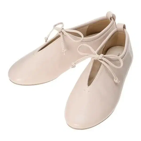 • [택 포함 새상품] 크루루바리에 펄 장식 플랫슈즈 베이지 리본